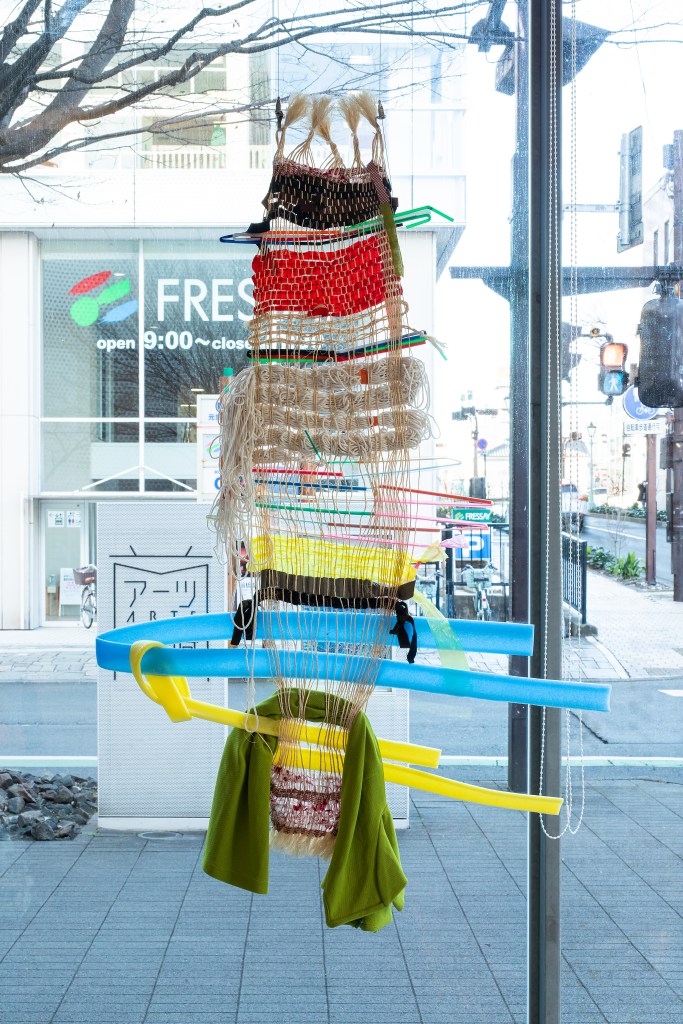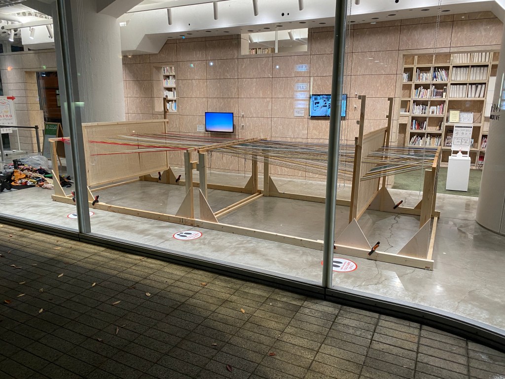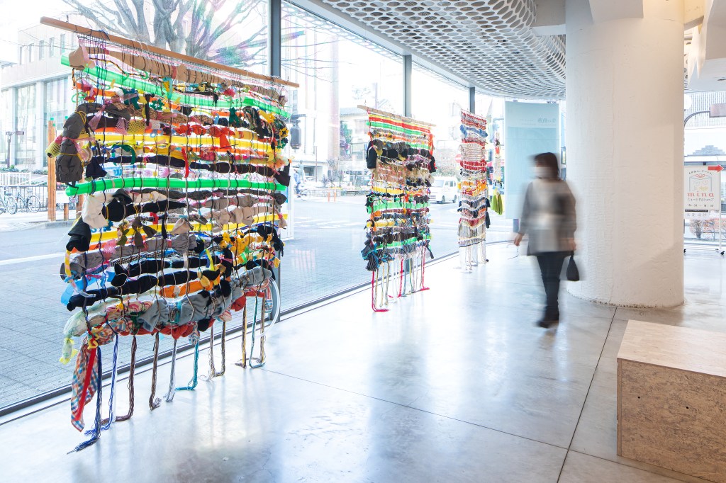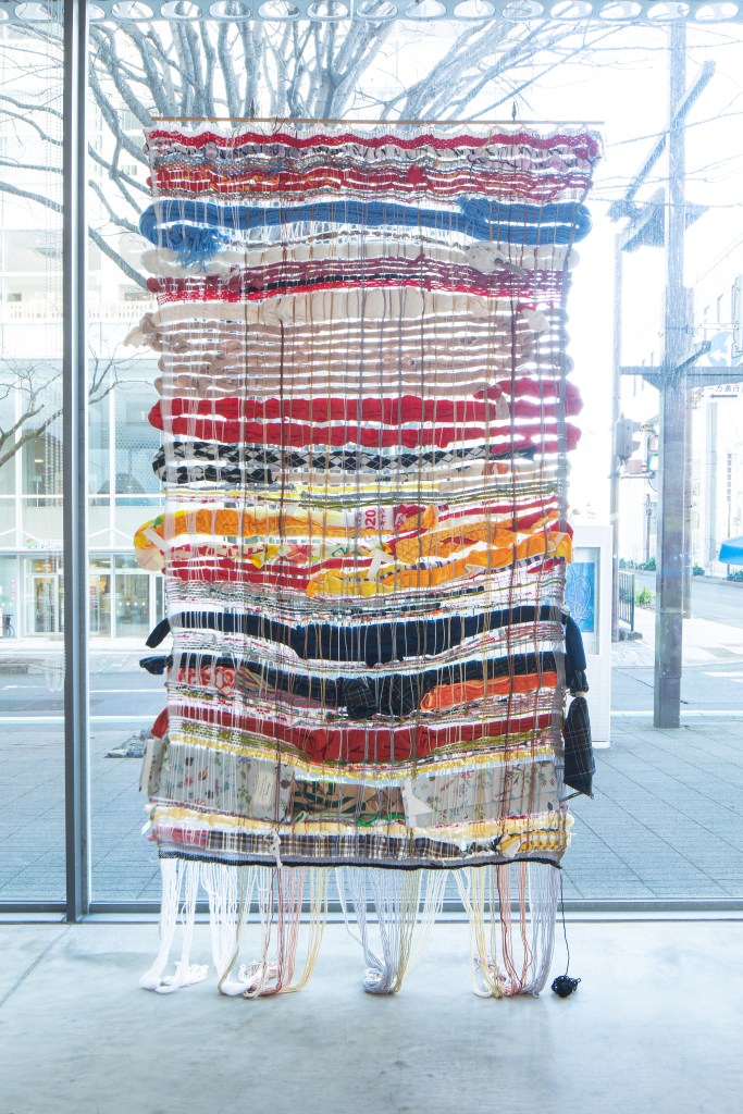 「あーつひろば」はアーツ前橋で工作を楽しんだり、アーティストと一緒に活動したり、ひろばのようにいろいろな体験ができる市民参加型のイベントプログラム。2021年度はコロナ過でイベントの実施が難しいなか、「巨大機織り」を実施し、双子の織物が完成しました。