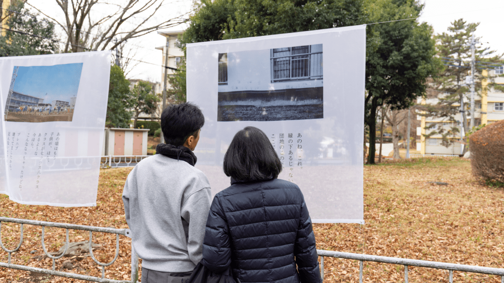 本作は、常盤平で出会った人々へのインタビューから抽出された「言葉」と、この街の「今と昔」を記録した写真を多層的に重ね合わせたコラージュ作品である。