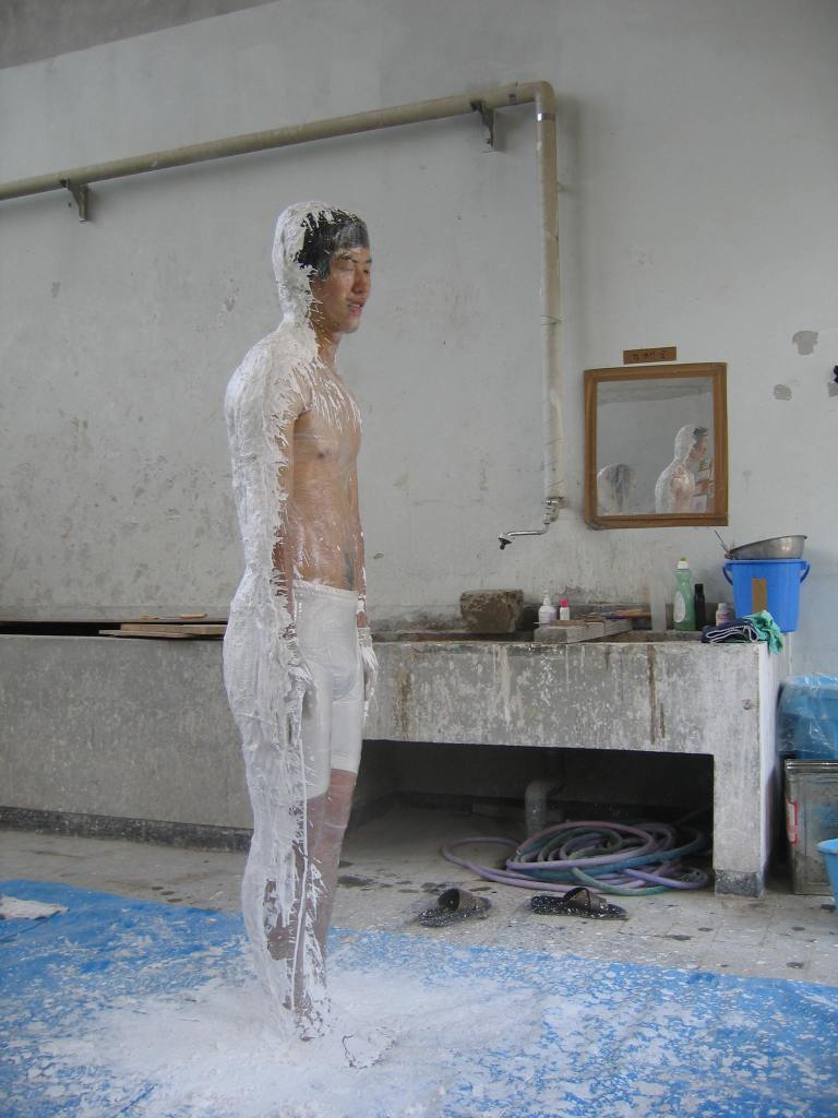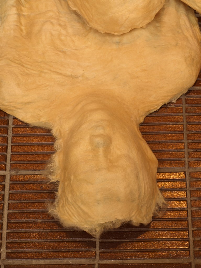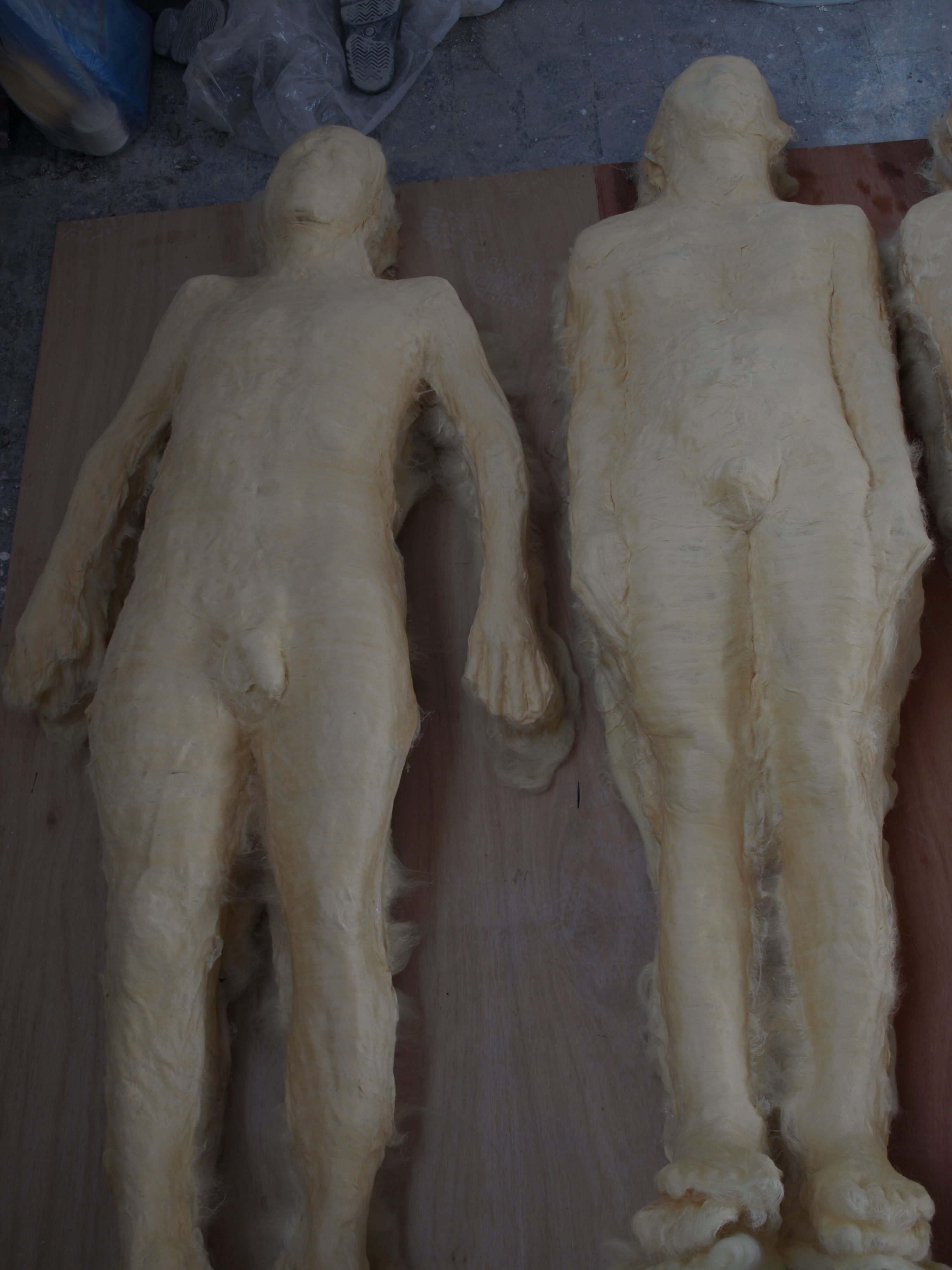 あらゆる解釈を許容しながらも、なお作品が失わない「統一性」とは何か。 私は彫刻の造形言語を一度「無」に帰すことで、逆説的に量感や生命感を、より強固な意識へと転換させることを試みた。「積まれた人体」というモチーフにおいて、羊毛の固まった質感と、物と化した身体のイメージをリンクさせ、死という記号を記号的に継承する。 無へと還元された要素を積み上げ、そこから新たな一なる意味を立ち上げること。それが私の彫刻における「無」の実践である。
