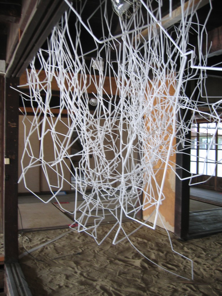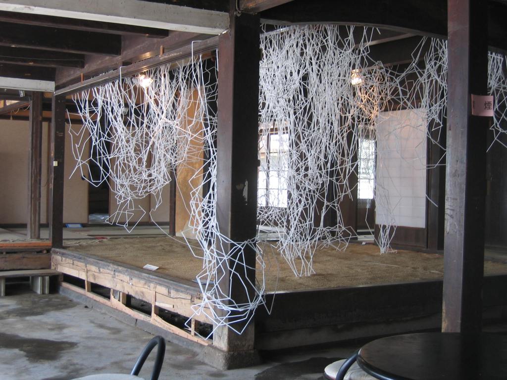 一つの要素が集合することにより、まったく別の要素に見えてくる。ストローを連結させる連続した行為は、意識を増殖させ、空間に溶け込む。