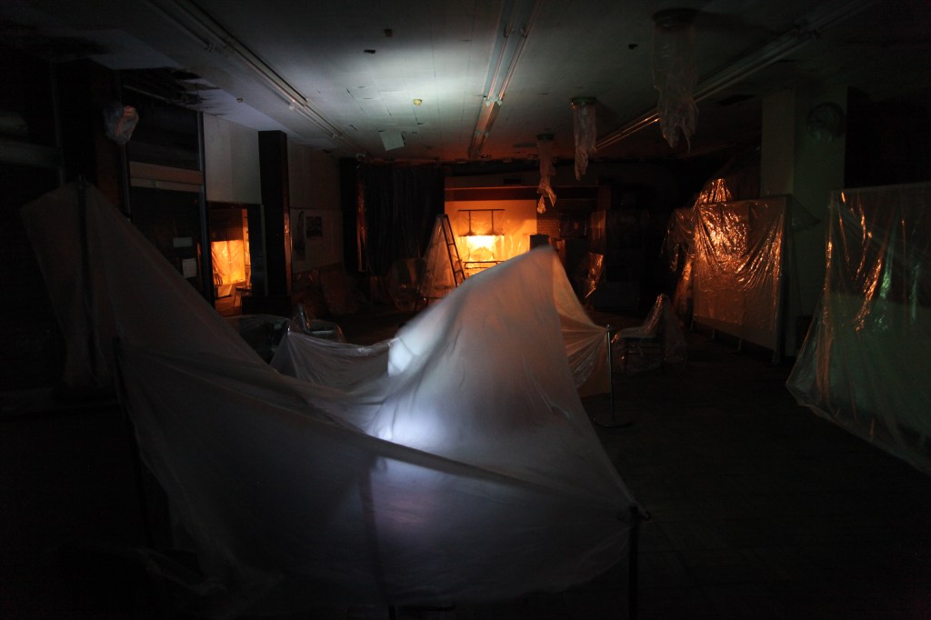 ここは昔のパチンコ屋外観はまるで映画館。この街では多くの映画が撮影され、ここで上映された。地元民は椅子に座り見上げていた。自分たちの街と姿を映画という作り物を。作り物の映画館で。多くの映画資料、歩き回ると見えてくるチラシ、看板、ロケ撮影地図。当時のままのモノ。ここには偽りと真実が混在するという現実がある